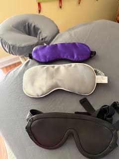 Soft face mask may be requested to rest the eyes and heighten sensory experience.